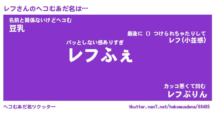 | ポケモン風あだ名 | 『レフチュウ』『レフダネ』『ヒレフ』 |