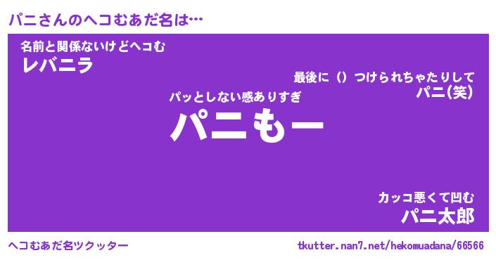 | 男性向けラノベタイトル風あだ名 | 『パニの憂鬱』『ノーゲーム・ノーパニ』 |