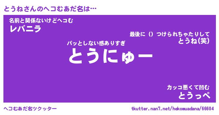 | ポケモン風あだ名 | 『トウチュウ』『トウネダネ』 |
