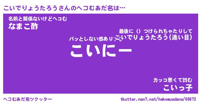 | 胡散臭い通販商品みたいなあだ名 | 『億万長者になれるブレスレット…その名も「こいでりょうたろう」』 |