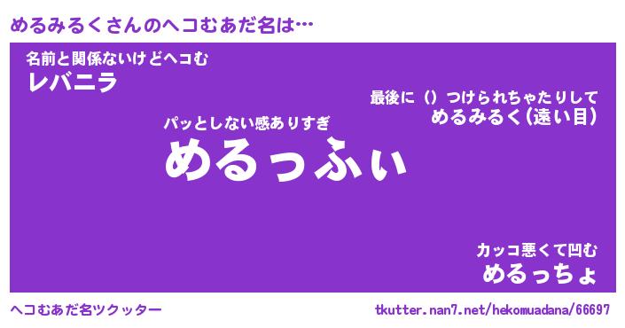 | 2回繰り返すあだ名 | 『めるめる』『めめるる』『ごたごた』 |