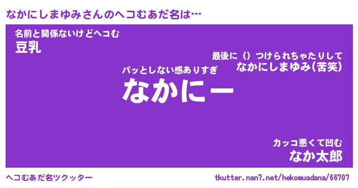| ヒーロー風カッコイイあだ名 | 『スーパーナカニシマユミ』 |