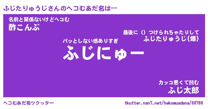 | 男性向けラノベタイトル風あだ名 | 『ふじたりゅうじの憂鬱』 |