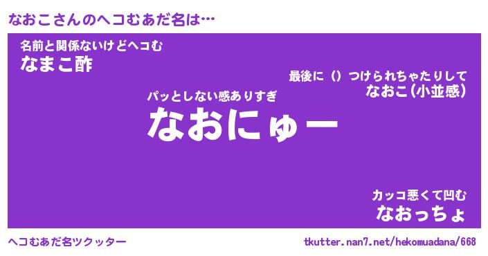| ポケモン風あだ名 | 『ナオチュウ』『ナオコダネ』 |