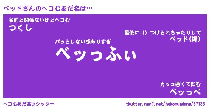 | ポケモン風あだ名 | 『ベッチュウ』『ベッドダネ』 |