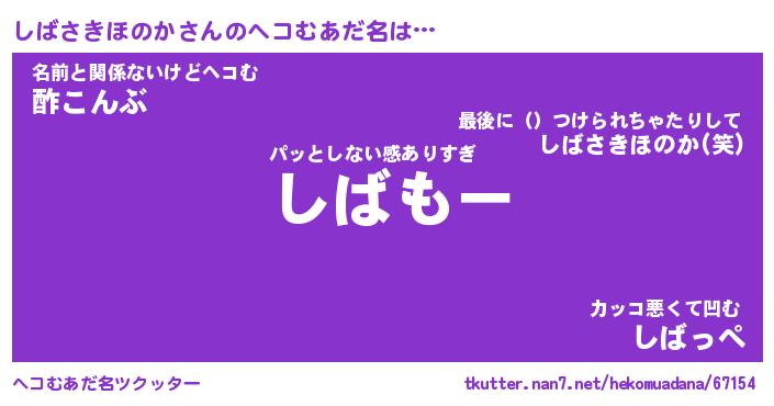 | 意味不明あだ名 | 『ペロリンしばさきほのか』 |