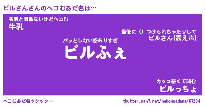 | ファンタジー風あだ名 | 『ビルフェル』『エターナルビルサンー』 |