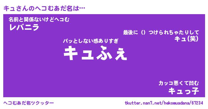 | ファンタジー風あだ名 | 『キュフェル』『エターナルキュー』 |