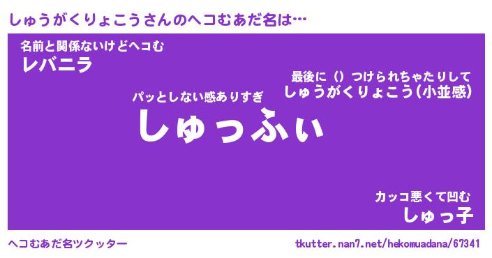 | 2回繰り返すあだ名 | 『しゅしゅ』『ししゅゅ』『ぎちぎち』 |