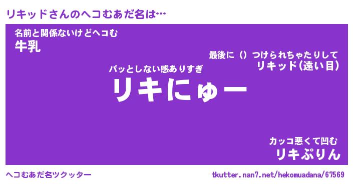 | ファンタジー風あだ名 | 『リキフェル』『エターナルリキッドー』 |