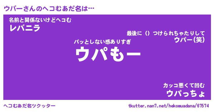 | ファンタジー風あだ名 | 『ウパフェル』『エターナルウパーー』 |