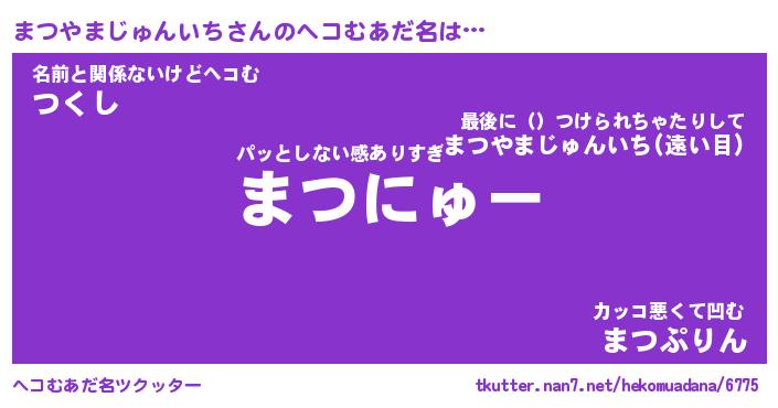 | 男性向けラノベタイトル風あだ名 | 『まつやまじゅんいちの憂鬱』 |
