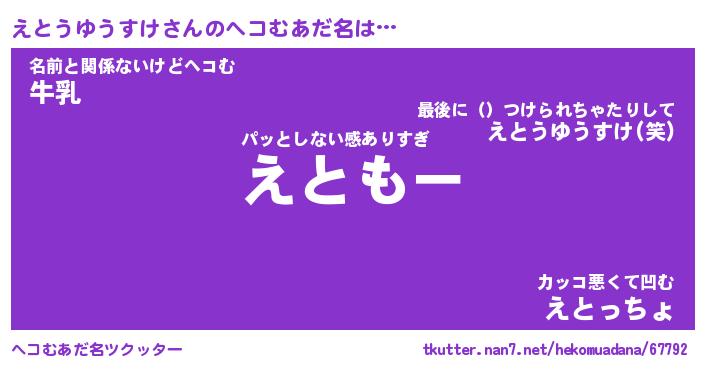 | 男性向けラノベタイトル風あだ名 | 『えとうゆうすけの憂鬱』 |