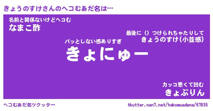 | 意味不明あだ名 | 『ペロリンきょうのすけ』 |