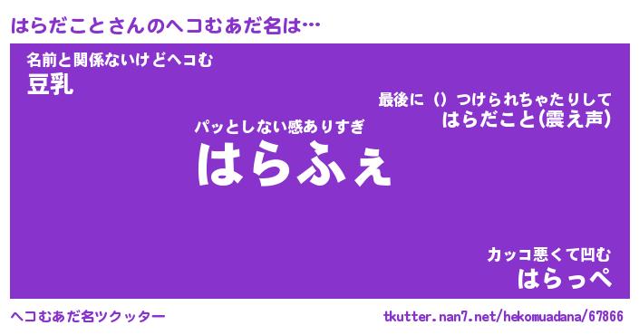 | ファンタジー風あだ名 | 『ハラフェル』『エターナルハラダコトー』 |