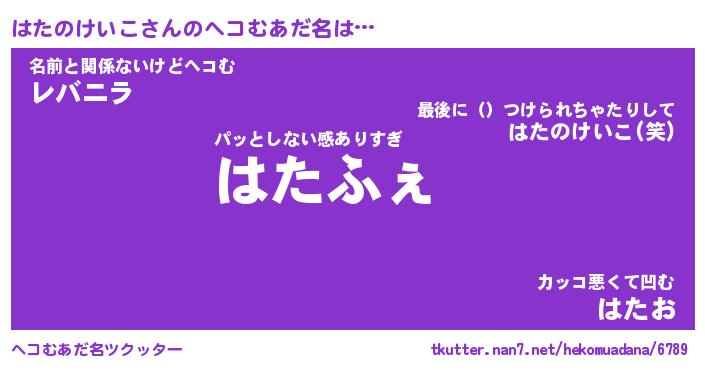 | ヒーロー風カッコイイあだ名 | 『スーパーハタノケイコ』『天弓騎士ハタ』 |