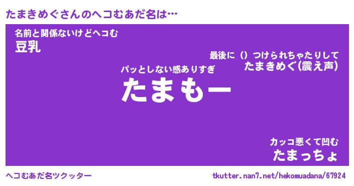 | ファンタジー風あだ名 | 『タマフェル』『エターナルタマキメグー』 |