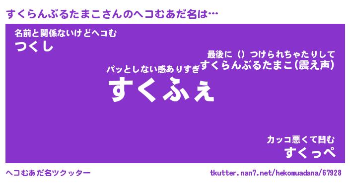 | ヒーロー風カッコイイあだ名 | 『スーパースクランブルタマコ』 |