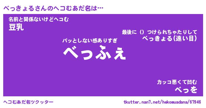 | 男性向けラノベタイトル風あだ名 | 『べっきょるの憂鬱』 |