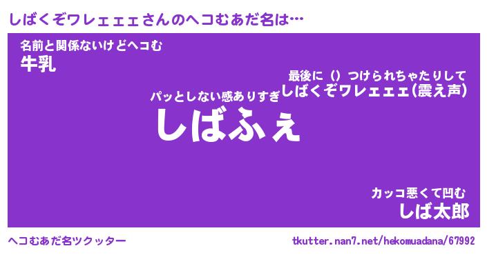 | ヒーロー風カッコイイあだ名 | 『スーパーシバクゾワレェェェ』 |