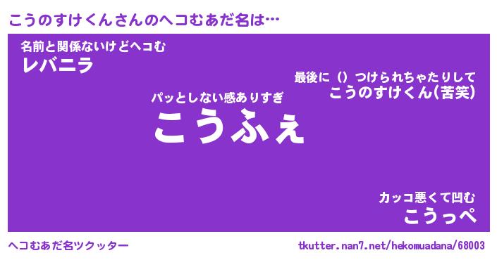 | 欧米人風あだ名 | 『マイケルこうのすけくん』 |