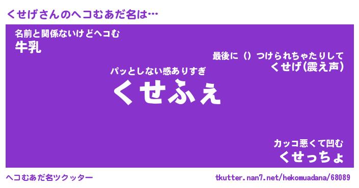 | 意味不明あだ名 | 『ペロリンくせげ』『くせげフォーエバー』 |