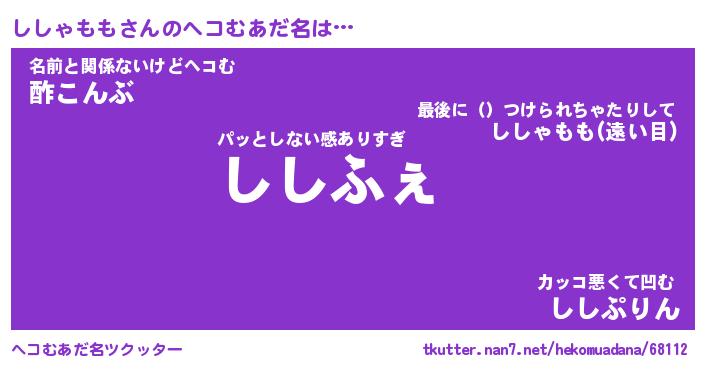 | 胡散臭い通販商品みたいなあだ名 | 『モテモテ間違いなし水晶球…その名も「ししゃもも」』 |