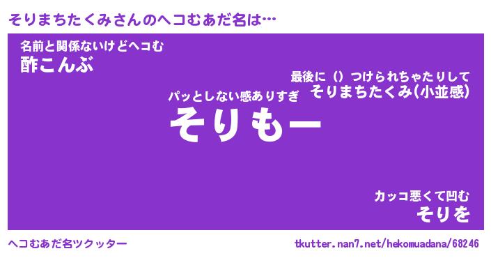 | 欧米人風あだ名 | 『マイケルそりまちたくみ』 |