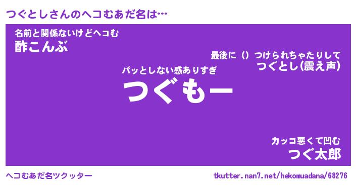 | ポケモン風あだ名 | 『ツグチュウ』『ツグトダネ』 |