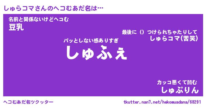 | 男性向けラノベタイトル風あだ名 | 『しゅらコマの憂鬱』 |