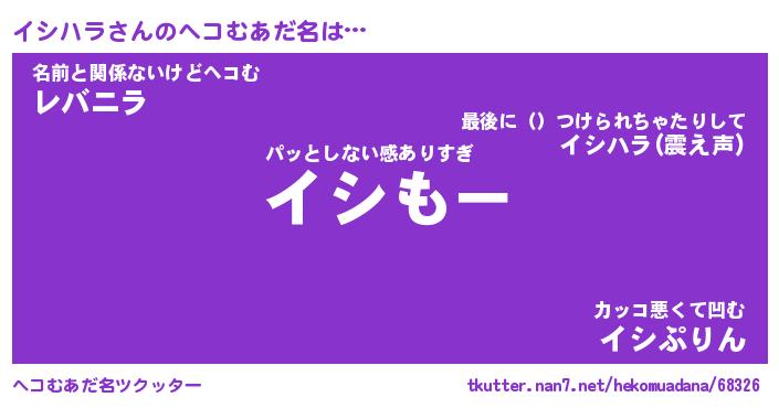 | ファンタジー風あだ名 | 『イシフェル』『エターナルイシハラー』 |