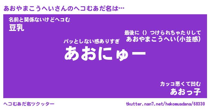 | 意味不明あだ名 | 『ペロリンあおやまこうへい』 |