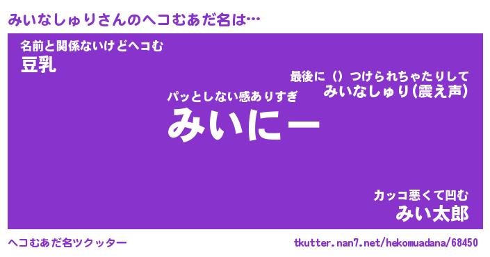 | 男性向けラノベタイトル風あだ名 | 『みいなしゅりの憂鬱』 |
