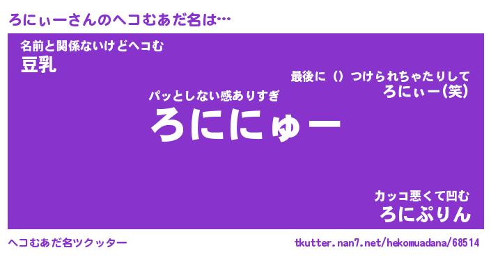 | 意味不明あだ名 | 『ペロリンろにぃー』『永久保存ろにぃー』 |