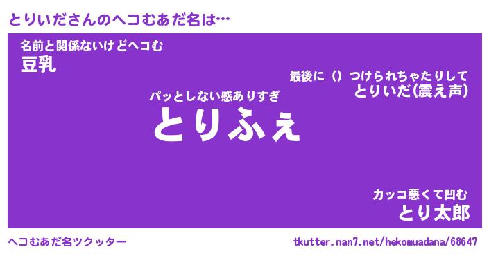 | 男性向けラノベタイトル風あだ名 | 『とりいだの憂鬱』 |