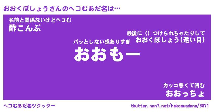 | 2回繰り返すあだ名 | 『おおおお』『おおおお』『ぶんぶん』 |