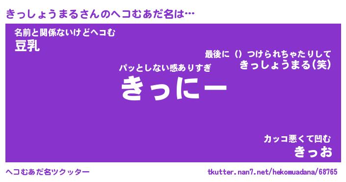 | 男性向けラノベタイトル風あだ名 | 『きっしょうまるの憂鬱』 |