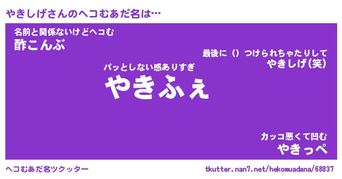 | ファンタジー風あだ名 | 『ヤキフェル』『エターナルヤキシゲー』 |