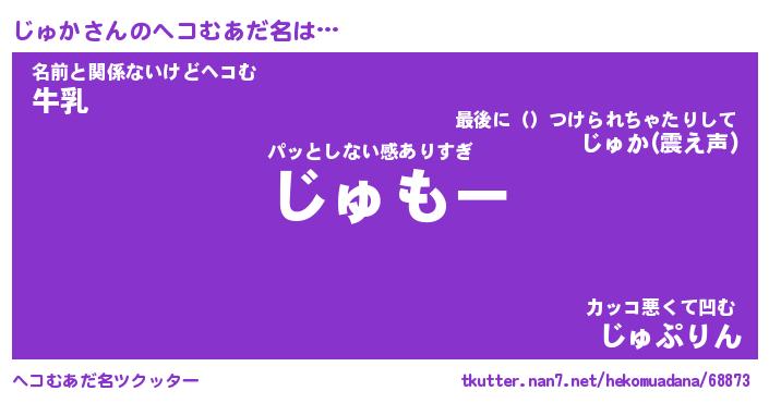 | 男性向けラノベタイトル風あだ名 | 『じゅかの憂鬱』 |