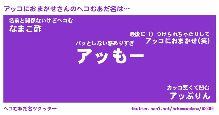 | 意味不明あだ名 | 『ペロリンアッコにおまかせ』 |