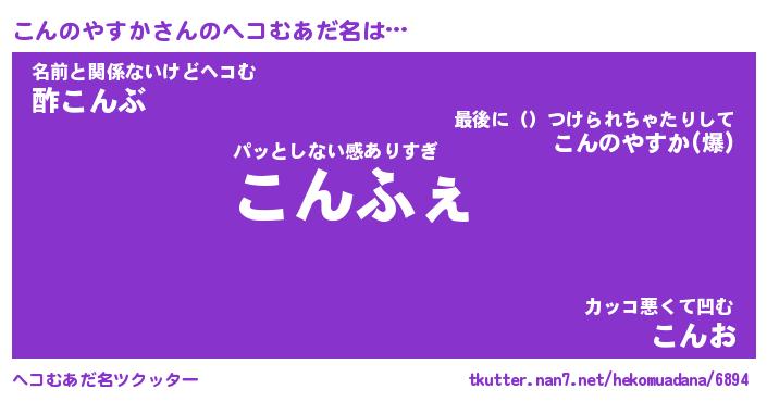 | 男性向けラノベタイトル風あだ名 | 『こんのやすかの憂鬱』 |