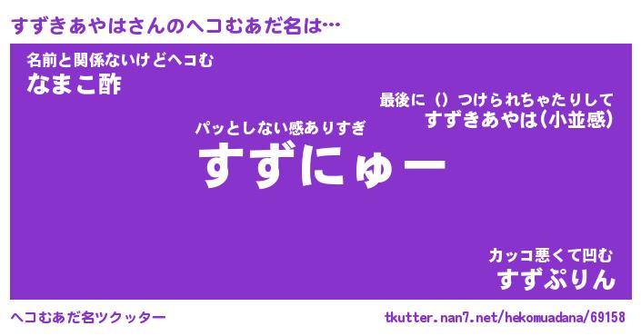 | ヒーロー風カッコイイあだ名 | 『スーパースズキアヤハ』『炎刃騎士スズ』 |