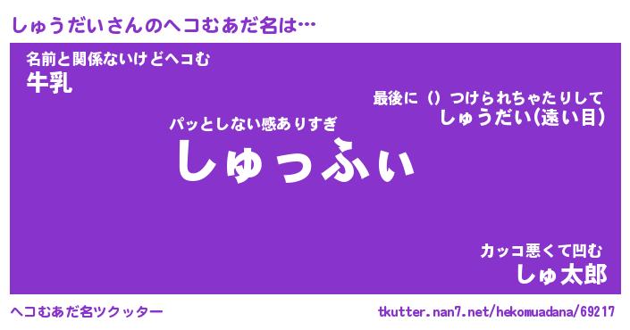 | 2回繰り返すあだ名 | 『しゅしゅ』『ししゅゅ』『おらおら』 |