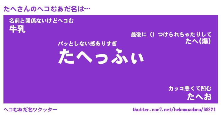 | ポケモン風あだ名 | 『タヘチュウ』『タヘダネ』『ヒタヘ』 |