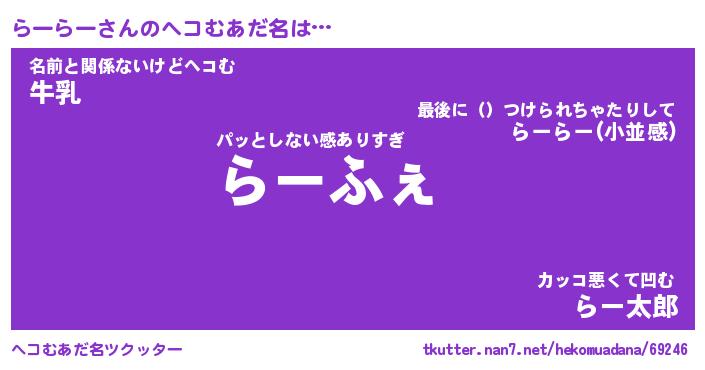 | 意味不明あだ名 | 『ペロリンらーらー』『永久保存らーらー』 |