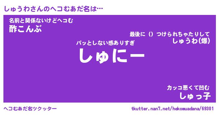 | 2回繰り返すあだ名 | 『しゅしゅ』『ししゅゅ』『ぬめぬめ』 |