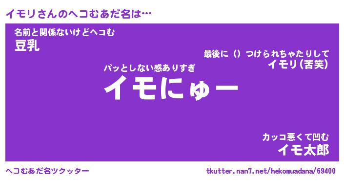 | ポケモン風あだ名 | 『イモチュウ』『イモリダネ』 |