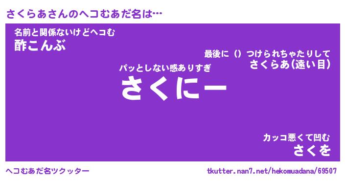 | 意味不明あだ名 | 『ペロリンさくらあ』『永久保存さくらあ』 |