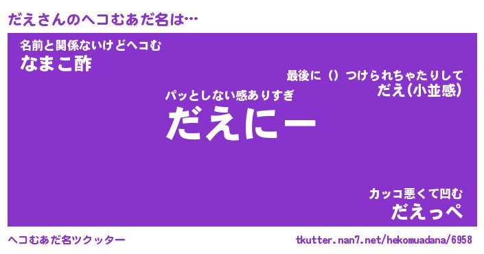 | 2回繰り返すあだ名 | 『だえだえ』『だだええ』『ぬめぬめ』 |