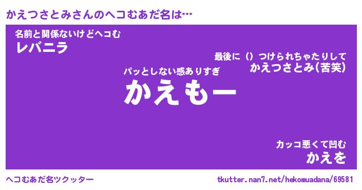 | 2回繰り返すあだ名 | 『かえかえ』『かかええ』『ぬぷぬぷ』 |